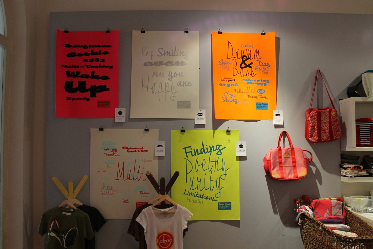 The weight of the typeface evolve in a way that pushes the limits of a script typeface to suggest new uses. Normally, families are developed in weights, not proportions. Also, having several weights in a script family is rather rare. But in Razon Script, as the fonts gain weight, big differences show up in the font outlines: the thin weight looks soft and delicate but as we examine darker variables, they also seem to get broken. The counters of the letters rotate from vertical to horizontal during this process.