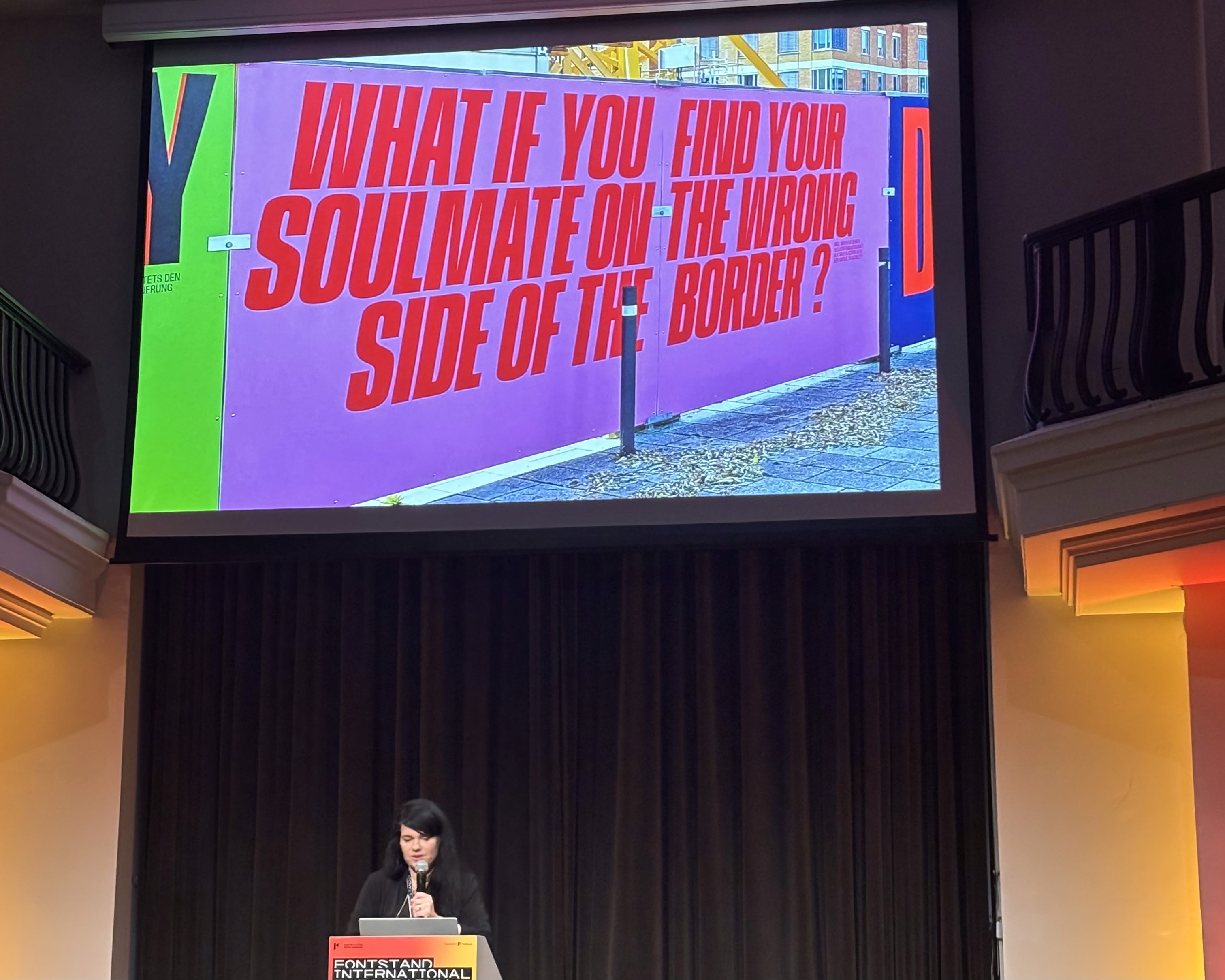 Okrem iného hovorila o tvorbe stop-motion animácie pre Vice, kde okrem iného jej dve mačky zlízavajú nápis vytvorený z mlieka. Zaujal ma najmä jej projekt vo verejnom priestore s názvom „Borders“ (Hranice). Ide o 350 metrov dlhý stavebný plot budúceho múzea, ktoré vyrastá v bývalom hraničnom pásme, kde kedysi stál Berlínsky múr. Inštalácia využíva citáty reagujúce na tému politických aj osobných hraníc.